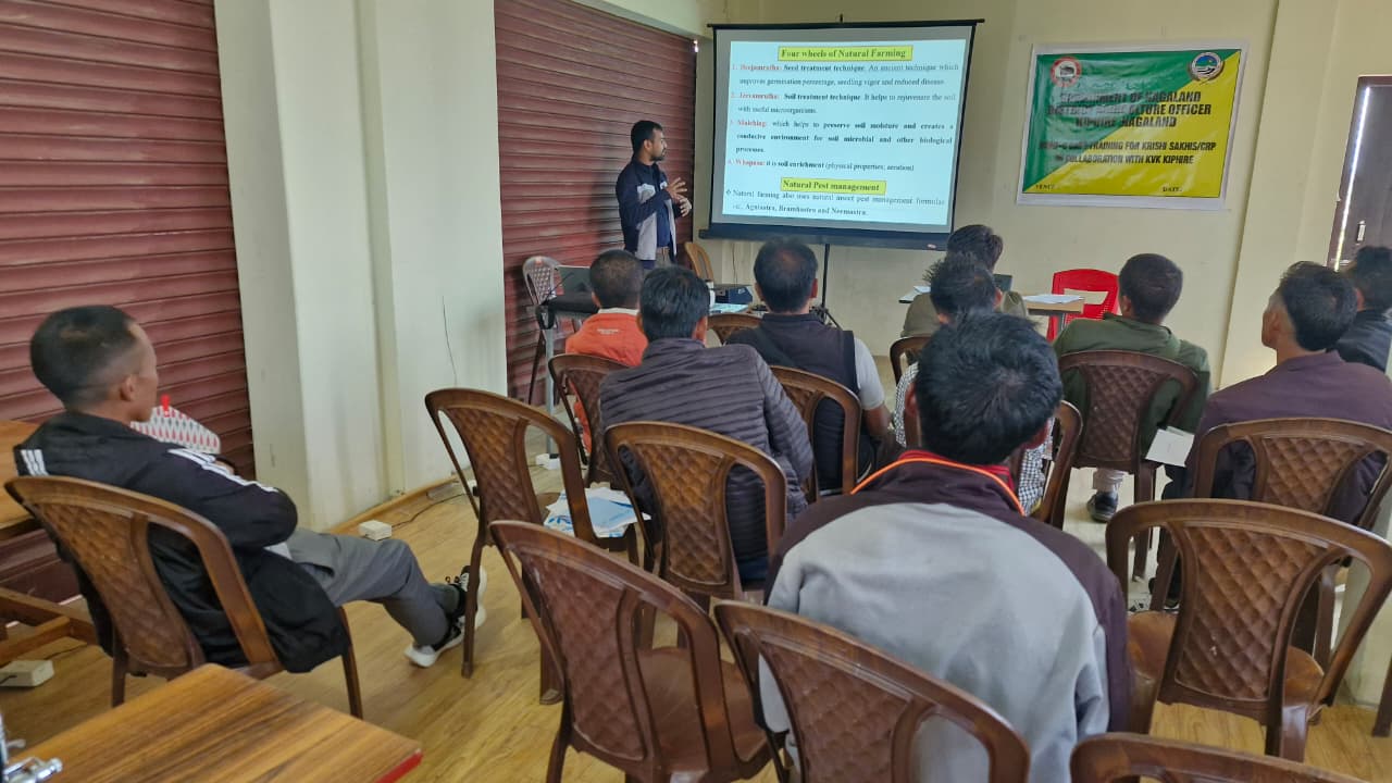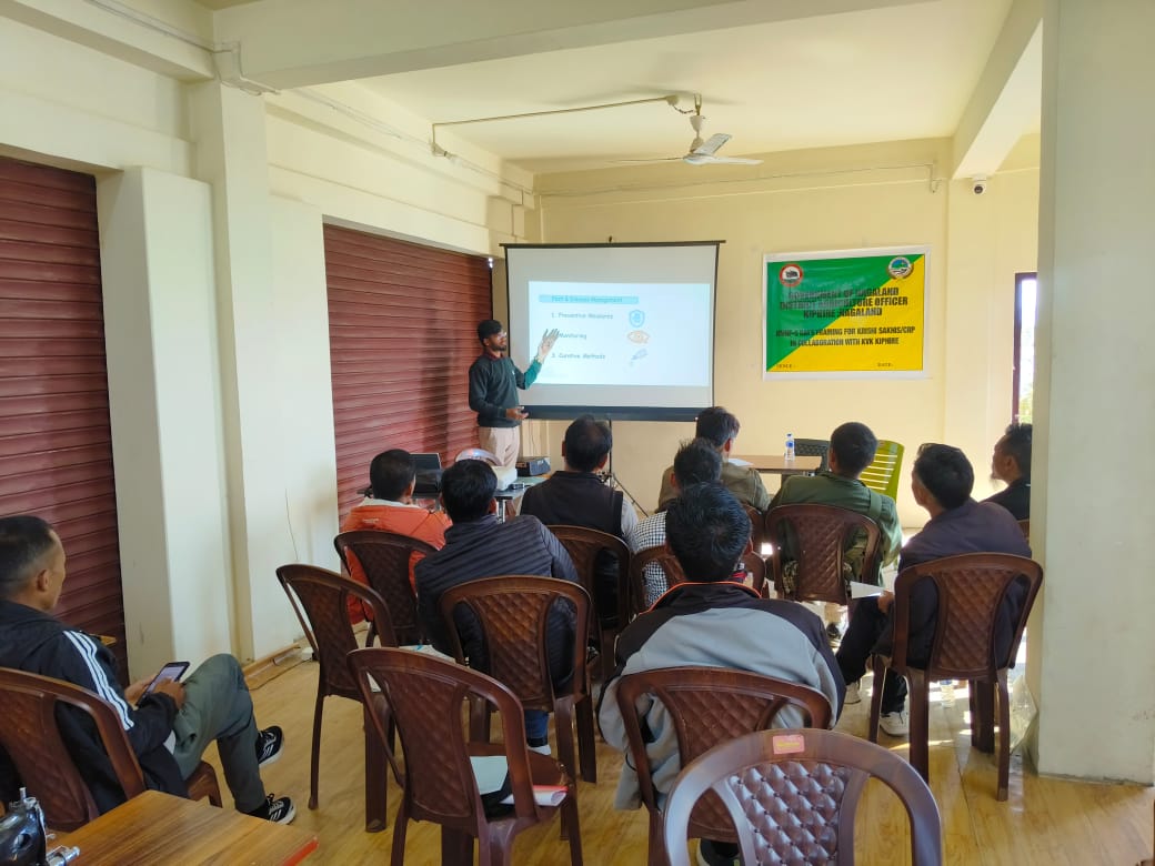 • AS per the mandates, KVK Kiphire is working at the grassroot level for upliftment of the farming community in particular and the society in general through its various activities. The major areas of training include scientific crop production, soil health and fertility management through organic and INM practices, integrated pest and disease Management, integrated farming system (IFS), crop diversification, processing and value addition, scientific livestock management, in situ resource generation through composting technologies, organic and natural farming etc.